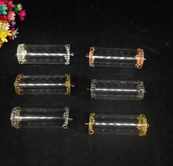 معلومات اضافية 20 قطع 40*15 ملليمتر أنبوب الجرار علبة زجاج القارورة مع اثنين زهرة زر فتح متمنيا زجاجة قلادة الزجاج غطاء سوار