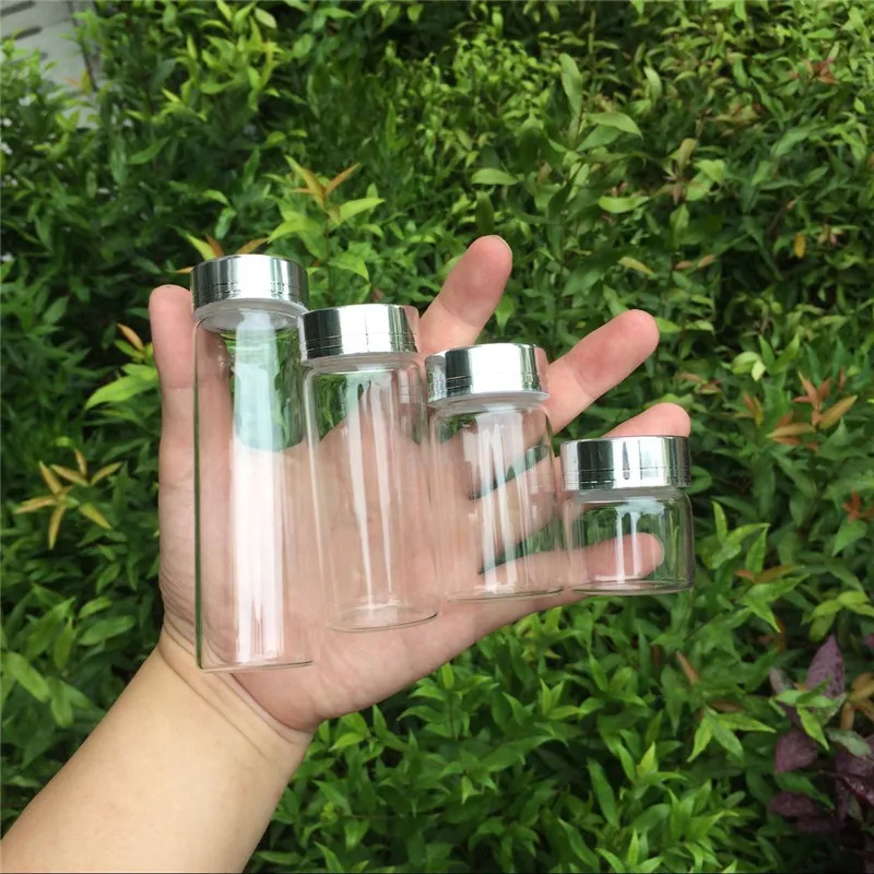 20 ملليلتر 50 ملليلتر 65 ملليلتر 90 ملليلتر الزجاجات مع الفضة الألومنيوم كاب هدية الجرار حفل زفاف الديكور 24 قطع شحن مجاني