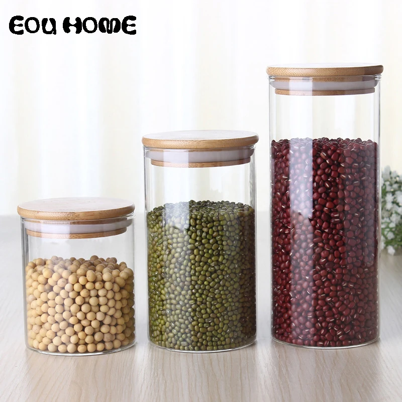 شراء 450/650/950 مللي متعددة الأغراض غطاء من البامبو الزجاج برطمانات خزف محكمة الإغلاق تخزين زجاجات الجرار الحبوب الشاي أوراق القهوة الفاصوليا الحلوى... رخيص